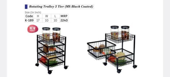 Basket Rotating trolly 3 tier (ms black coated) (K-189)