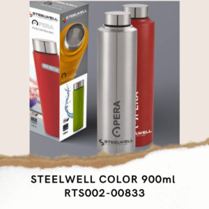 “Stay refreshed all day with the Steelwell Stainless Steel Bottle 900ml – a perfect blend of durability, elegance, and functionality. Crafted from premium-grade stainless steel, this bottle keeps your beverages fresh and odor-free for hours. Its sleek, modern design makes it ideal for home, office, school, gym, or travel use. Lightweight, rust-resistant, and easy to clean, the Steelwell Bottle is your reliable hydration partner wherever you go.”